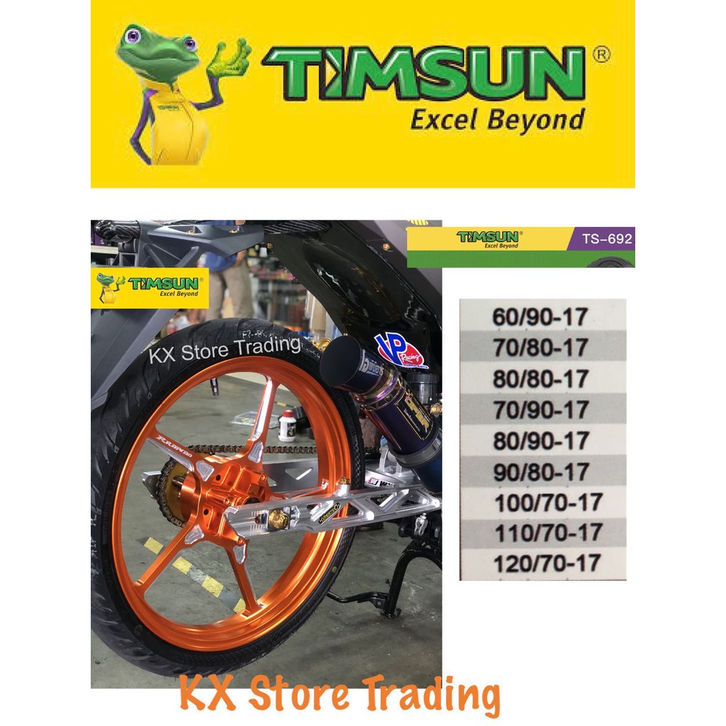 Tayar Size 17 Original Timsun Tayar Ts692 Sp All Size 60 90 17 70 80 17 80 80 17. Welcome to the fascinating world of gac motor built on quality innovation refined design and responsibility. Do you want to buy TIMSUN TYRE TUBELESS 50 90 60 90 70 90 70 80 80 80 90 14 17 TAYAR RACING Y15 Y125Z LC135 for RM89 from the genuine or want to buy it from a distributor and agent for only RM89.