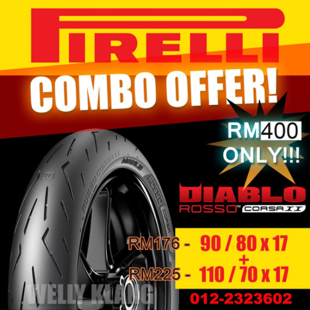 Tyre Tayar Combo Pirelli Diablo Rosso Corsa 2 90 80x17 110 70x17 Yamaha Y15 Y15zr Lc135 135lc Honda Rs150 Shopee Malaysia